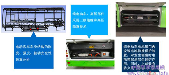 同時(shí),少林客車基于設(shè)計(jì)經(jīng)驗(yàn)和CAE分析電動(dòng)客車車身結(jié)構(gòu)、電動(dòng)客車電池保護(hù)系統(tǒng),安全防護(hù)如圖所示。