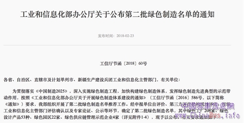 據(jù)了解,為貫徹落實(shí)《中國制造2025》,深入實(shí)施綠色制造工程,加快構(gòu)建綠色制造體系,發(fā)揮綠色制造先進(jìn)典型的示范帶動(dòng)作用,按照《工業(yè)和信息化部辦公廳關(guān)于開展綠色制造體系建設(shè)的通知》要求,工信部組織開展了第二批綠色制造名單推薦工作。