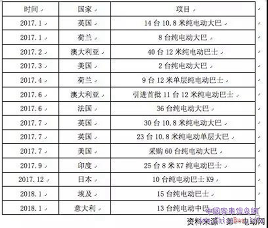 比亞迪2017年純電動(dòng)大巴部分國外訂單