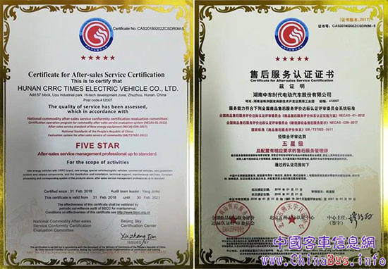 一名售后服務(wù)工程師正拿著一本“閃亮”的證書緩緩走來。這就由國(guó)家商務(wù)部發(fā)文,第三方機(jī)構(gòu)北京五洲天宇認(rèn)證中心認(rèn)證的“五星級(jí)售后服務(wù)”證書。該認(rèn)證意味著中車電動(dòng)提供的產(chǎn)品和售后服務(wù)體系,達(dá)到國(guó)家最高認(rèn)證標(biāo)準(zhǔn)。