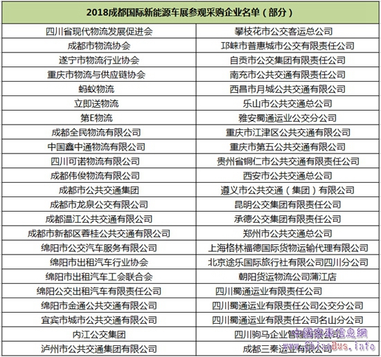 公交物流作為本屆成都新能源車展的重點展示板塊,得到了包括四川省現(xiàn)代物流發(fā)展促進會、成都市物流協(xié)會、成都市公共交通集團、成都市龍泉公交有限公司、成都三秦運業(yè)有限公司、成都溫江公共交通有限公司、綿陽市公交汽車服務有限公司、綿陽市出租汽車行業(yè)協(xié)會、綿陽市出租汽車工會聯(lián)合會、綿陽公交出租汽車有限責任公司、成都汽車汽配行業(yè)協(xié)會、成都市新都區(qū)蓉桂公共交通有限公司、宜賓市城市公共交通有限公司、內(nèi)江公交集團、瀘州市公共交通集團有限公司、重慶市江津區(qū)公共交通有限公司、重慶第五公交公司、貴州省銅仁市公共交通有限責任公司、西安市公共交通總公司、遵義市公共交通(集團)有限公司、昆明公交集團有限責任公司、承德公交集團有限責任公司、鄭州市公共交通總公司等120家公交集團、物流協(xié)會的回函支持,表示會大力參與本屆成都國際新能源車展。