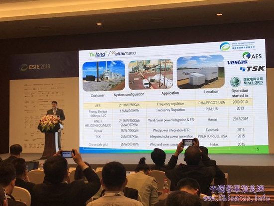 銀隆新能源國(guó)際儲(chǔ)能研究院院長(zhǎng)及美國(guó)奧鈦納米技術(shù)公司高級(jí)技術(shù)總監(jiān)Brad Hanauer在《熱管理在大規(guī)模鋰離子電池系統(tǒng)中的重要性》的演講中提到,銀隆新能源全資子公司美國(guó)奧鈦已經(jīng)在國(guó)內(nèi)外成功實(shí)施了多個(gè)儲(chǔ)能項(xiàng)目,包括為美國(guó)AES Corporation電力公司在費(fèi)城實(shí)施的儲(chǔ)能項(xiàng)目、為夏威夷自然能源學(xué)院提供的三套儲(chǔ)能系統(tǒng)、為維斯塔斯Vestas在丹麥提供的儲(chǔ)能項(xiàng)目、為波多黎各安裝的儲(chǔ)能系統(tǒng)等。在國(guó)內(nèi),參與深圳寶清儲(chǔ)能電站示范工程、國(guó)家電網(wǎng)合作的張北的風(fēng)光儲(chǔ)示范項(xiàng)目。