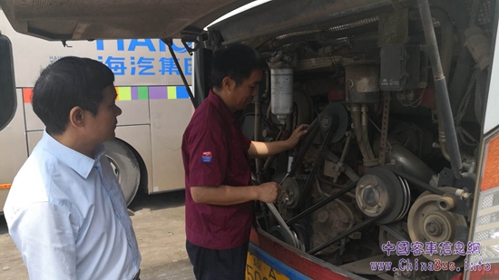 博鰲亞洲論壇開幕前,玉柴工作人員對服務(wù)車輛進行檢修
