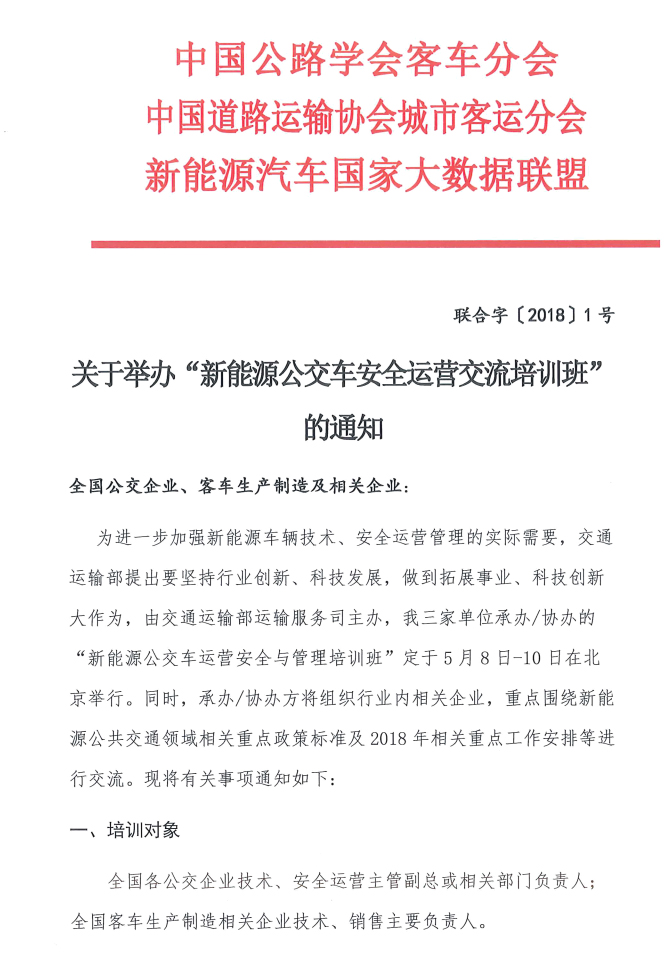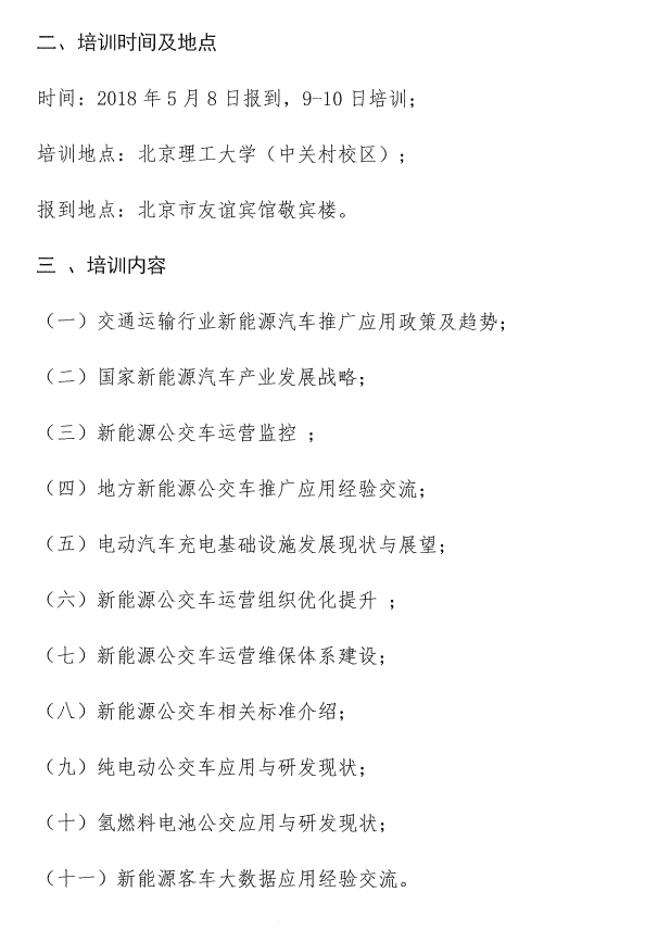 關(guān)于舉辦“新能源公交車安全運營交流培訓(xùn)班”的通知