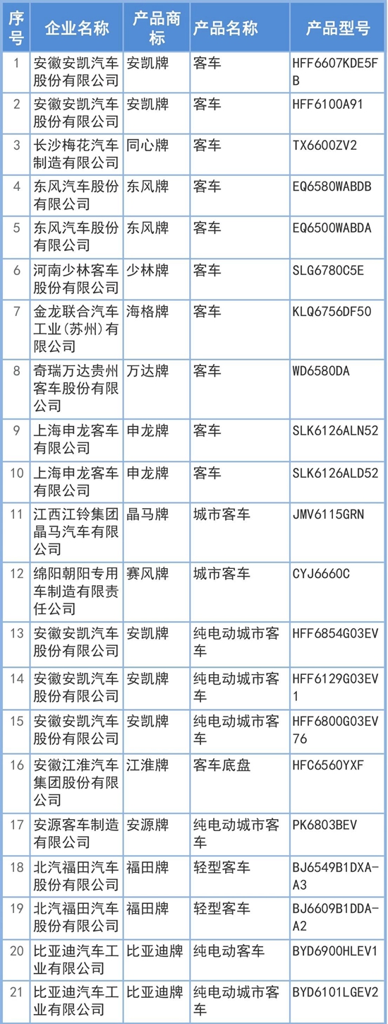 附:第307批新產(chǎn)品公示(客車部分)
