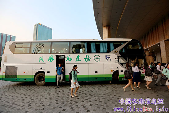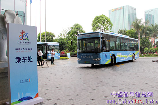 作為往返峰會現(xiàn)場、酒店,以及會務工作區(qū)循環(huán)擺渡車,由福州閩運公共交通有限公司抽調的全新金龍純電動公交,為峰會帶來綠色環(huán)保的交通服務。