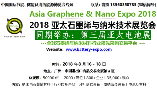 由廣東省人民政府扶持批準,定于2018年8月16-18日在廣州.廣交會展館A區(qū)與GBF.ASIA第三屆亞太電池展同時舉辦“2018亞洲納米與石墨烯技術展覽會”,通過對納米與石墨烯材料、行業(yè)應用產(chǎn)品、分析測式設備、微納智造設備、電池及材料的全產(chǎn)業(yè)鏈展示,打造面向亞太以及全球市場的石墨烯、納米材料與新能源電池產(chǎn)業(yè)技術交流高端展貿(mào)平臺!
