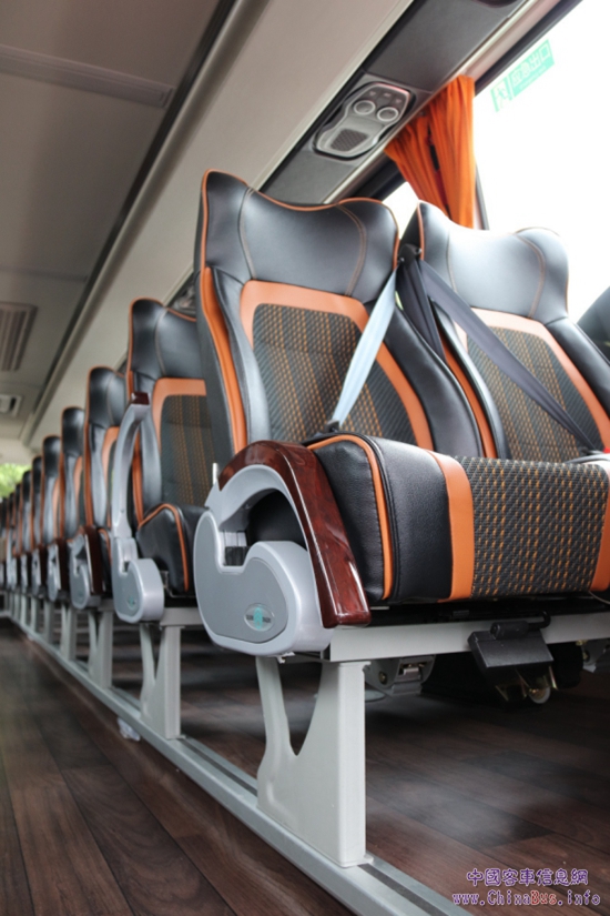 座椅是客車內(nèi)占據(jù)空間最大也是最能體現(xiàn)內(nèi)飾風(fēng)格的配置,新凱歌放棄了原有穩(wěn)重的商務(wù)風(fēng)格,采用了賽車風(fēng)格的座椅,這一大膽的設(shè)計(jì)贏得了各方認(rèn)可。在巡展現(xiàn)場,多位客戶都對新凱歌的內(nèi)飾變化感到驚訝,尤其對座椅設(shè)計(jì)表示認(rèn)可。新凱歌的座椅采用帶狀造型,富有包裹性的設(shè)計(jì)貼合人體坐姿,復(fù)合材料的面料既顯檔次又不失舒適,整體配色也很跳躍,符合了當(dāng)前很多從事旅游業(yè)務(wù)客戶的需要。