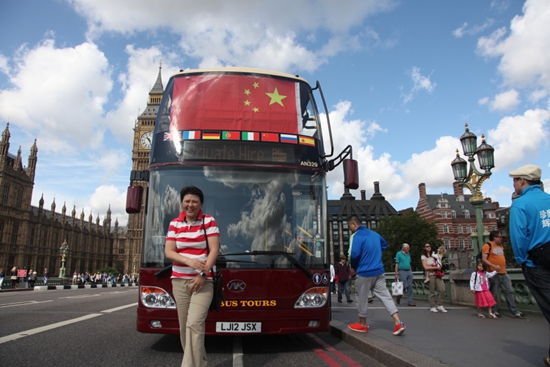 ▲▲2012年倫敦奧運(yùn)會(huì)期間,倫敦游客們?cè)诎矂P車前合影