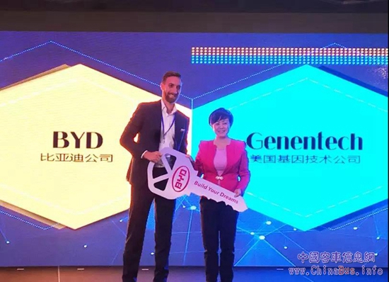 比亞迪向生物科技巨頭Genentech交付純電動雙層旅游大巴