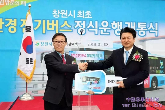 1月8日,一輛嶄新的海格KLQ6109GEV純電動公交亮相韓國慶尚南道昌原市,藍白相間的靚麗車身吸引了眾多韓國市民的圍觀。該款海格純電動公交車為韓國慶尚南道引入的第一輛用于運營的純電動公交車,也是海格客車首次走進韓國純電動公交市場。