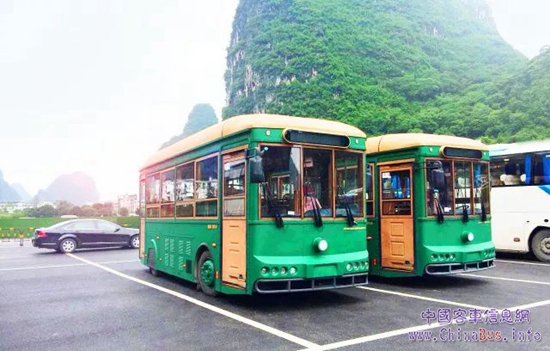 綠色復(fù)古外型與桂林山水相呼應(yīng),一出場(chǎng)就吸引眾多中外游客的眼球。