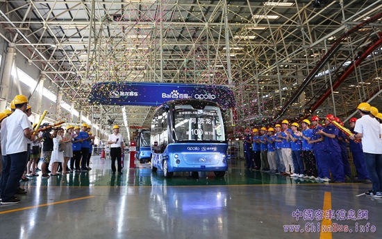 跨越夢想 見證無人駕駛時代到來 ——全球首款L4級量產自動駕駛巴士金龍阿波龍第100輛下線