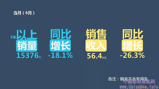 2018年上半年,中國客車行業(yè)銷售收入329.6億,同比增長22.9%,6月份實(shí)現(xiàn)銷售收入56.4億,增長-26.3%;中國客車行業(yè)5米以上客車產(chǎn)品累計(jì)銷售84335輛,同比增長12.9%,6月銷售15376輛,增長-18.1%。