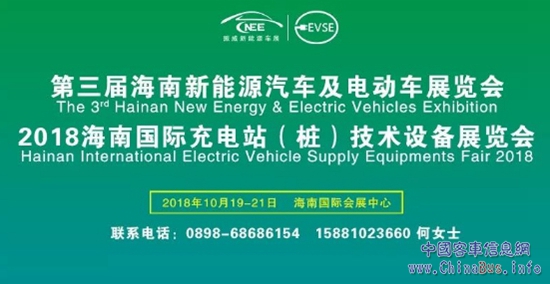 為加快促進(jìn)新能源汽車在海南的推廣應(yīng)用,推動(dòng)全省新能源汽車產(chǎn)業(yè)發(fā)展,打造生態(tài)島、健康島和國(guó)際旅游島,經(jīng)海南省人民政府批準(zhǔn),由海南省商務(wù)廳、海南省貿(mào)促會(huì)、海南省工業(yè)和信息化廳、海南省科學(xué)技術(shù)廳、??谑腥嗣裾c振威展覽股份等單位聯(lián)合舉辦的第三屆海南新能源汽車及電動(dòng)車展覽會(huì),將于2018年10月19—21日在海南國(guó)際會(huì)展中心舉行,本屆展會(huì)展示面積38000平方米,預(yù)計(jì)專業(yè)觀眾將達(dá)到50000人次。展會(huì)同期舉辦2018海南國(guó)際充電站(樁)技術(shù)設(shè)備展覽會(huì)。