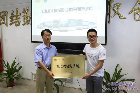 交流會后,上海交大與金旅客車舉行了授牌儀式,將金旅客車確定為上海交大“社會實踐基地”。