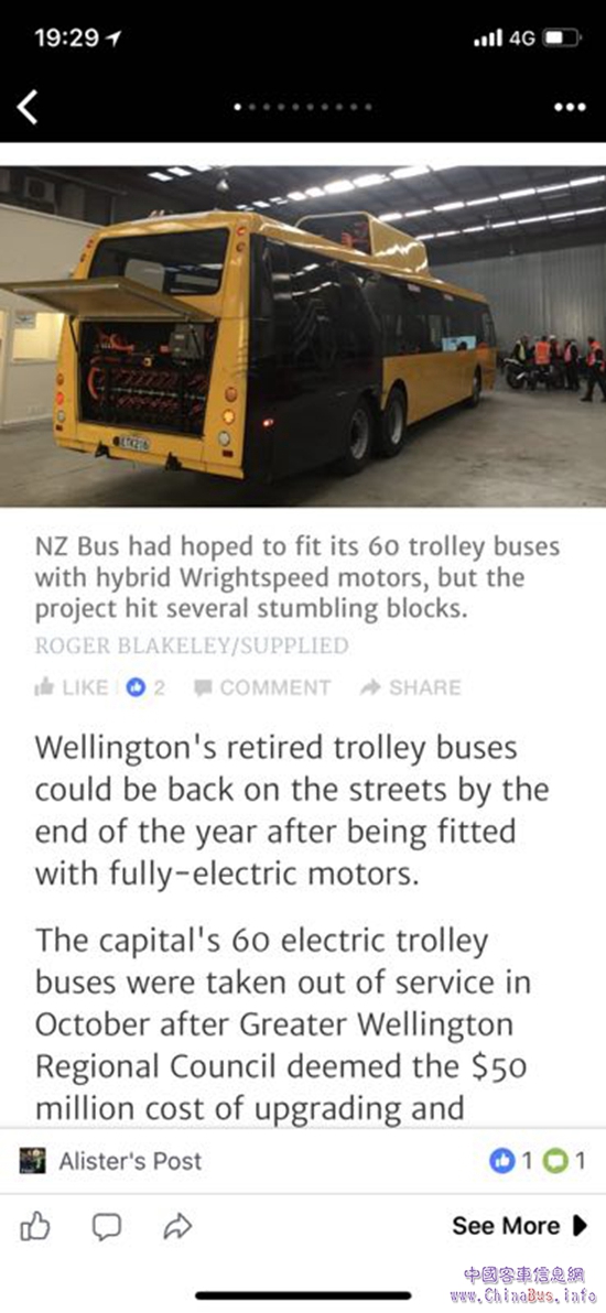 “真的很驚訝,這么短的時間,你們居然讓惠靈頓‘退休’的無軌電車‘重獲新生’!”看著已“變身”純電動客車的無軌電車,新西蘭NZ BUS公司總經(jīng)理Zane Fulljames興奮地說。