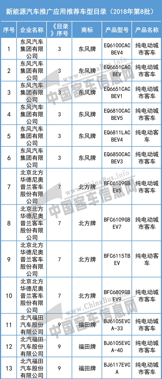 以下為《新能源汽車推廣應(yīng)用推薦車型目錄》(2018年第8批)(客車部分)