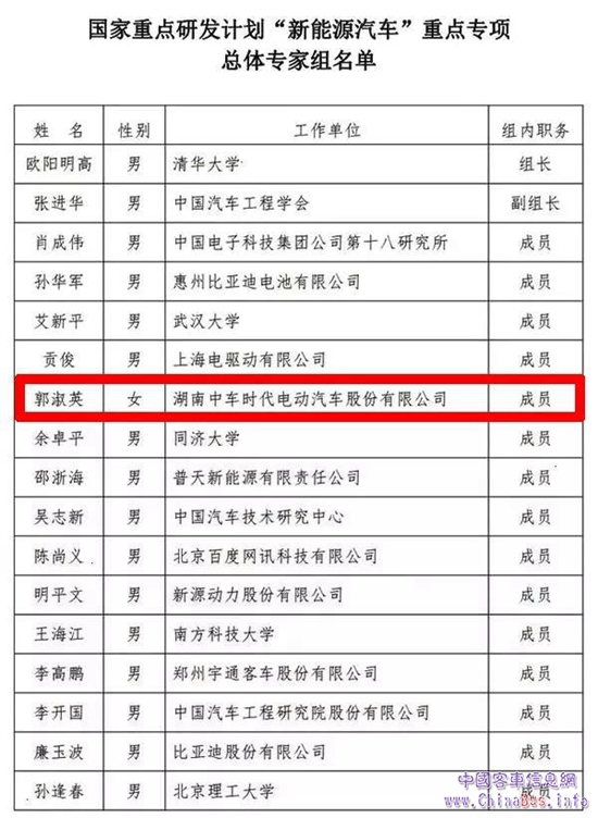 近日,國家重點研發(fā)計劃“新能源汽車”重點專項專家組名單公布。中國電動汽車百人會專家、中車株洲所首席專家、中車電動創(chuàng)始人——郭淑英入選,成為中國“零排放”前沿領(lǐng)域的帶頭人之一。
