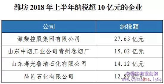 上半年,納稅超過10億元的企業(yè)有4戶,分別是濰柴控股集團(tuán)有限公司、山東中煙工業(yè)公司青州卷煙廠、山東壽光魯清石化有限公司和昌邑石化有限公司,納稅額分別是27.63億元、15.02億元、14.12億元和12.89億元,增幅分別為21.9%、-5.7%、107%和57.2%,納稅總額占百強(qiáng)企業(yè)稅金總額的34.6%。