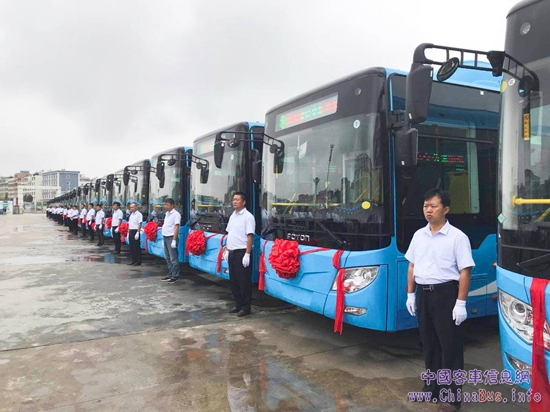【整裝待發(fā)的福田歐輝新能源公交車】