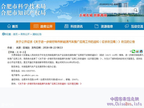 征求意見稿中指出,合肥市新增和更新公交車將全部應(yīng)用新能源汽車,鼓勵(lì)使用年限達(dá)到5年及車況較差的常規(guī)動(dòng)力公交車提前更新為新能源汽車。2020年底前,合肥市建成區(qū)公交車全部更換為新能源汽車。