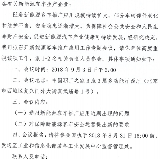 涉及76家客車企業(yè)!工信部發(fā)布召開新能源客車推廣應用工作專題會議的通知