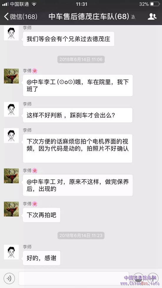 在北京售后團(tuán)隊(duì)的各個(gè)服務(wù)群中,經(jīng)常可以看到中車電動(dòng)售后服務(wù)工程師與客車司機(jī)的互動(dòng)。比如,在北京馬氏汽車租賃有限公司,有12輛中車電動(dòng)的整車在運(yùn)營(yíng),司機(jī)偶爾會(huì)因?yàn)椴僮鞑划?dāng)導(dǎo)致車輛無法正常啟動(dòng)。通過微信服務(wù)群,司機(jī)可第一時(shí)間將問題反饋,售后服務(wù)工程師則會(huì)及時(shí)進(jìn)行相關(guān)指導(dǎo),有時(shí)候僅僅是打開一個(gè)小開關(guān),車輛就可以恢復(fù)正常,但卻為司機(jī)帶來了極大便利,緩解了司機(jī)的焦慮。