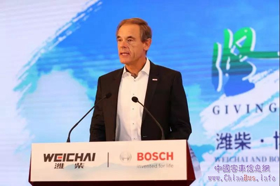 現(xiàn)場(chǎng)500多人的陣容,生態(tài)環(huán)境部副部長(zhǎng)趙英民、國(guó)家發(fā)改委資源節(jié)約和環(huán)境保護(hù)司司長(zhǎng)任樹(shù)本、中國(guó)內(nèi)燃機(jī)工業(yè)協(xié)會(huì)秘書(shū)長(zhǎng)邢敏,濰柴集團(tuán)董事長(zhǎng)、濰柴動(dòng)力董事長(zhǎng)、首席執(zhí)行官譚旭光,德國(guó)博世集團(tuán)董事會(huì)主席沃爾克馬爾?鄧納爾等領(lǐng)導(dǎo)與嘉賓的出席和發(fā)言,讓這場(chǎng)大會(huì)顯得格外隆重。