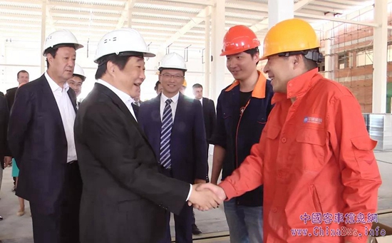 在現(xiàn)場,譚旭光親切慰問駐馬茲項目的全體成員,與大家一一握手,并詳細(xì)了解項目進展。