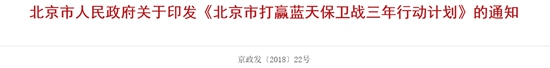 北京市打贏藍天保衛(wèi)戰(zhàn)三年行動計劃