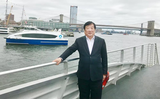 2018年9月20日,譚旭光再次來到美國紐約市中心,訪問濰柴博杜安客戶并看望運行在伊斯特河上的濰柴博杜安發(fā)動機。