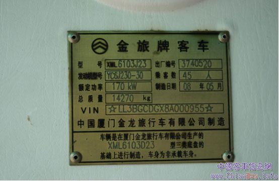 銘牌記錄金旅XML6103J23的10年發(fā)展歷程