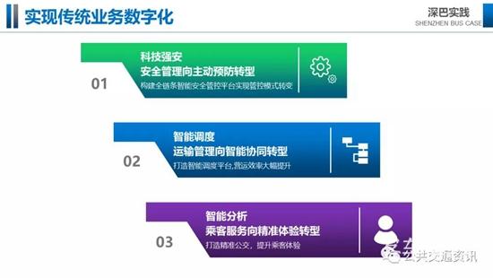 近年來,深圳巴士集團(tuán)積極開展數(shù)字化轉(zhuǎn)型工作,聯(lián)合華為開展公交企業(yè) “163”數(shù)字化轉(zhuǎn)型體系設(shè)計(jì),與滴滴優(yōu)點(diǎn)開展深度合作,活用大數(shù)據(jù)、5G、人工智能、物聯(lián)網(wǎng)等新型技術(shù),搭建公交數(shù)字化平臺(tái),打造安全預(yù)防、協(xié)同運(yùn)輸、精準(zhǔn)服務(wù)、數(shù)字管理、智慧決策和業(yè)態(tài)創(chuàng)新六大數(shù)字化能力;建立“網(wǎng)絡(luò)安全、智慧運(yùn)維、數(shù)字化治理”三方面保障,實(shí)現(xiàn)企業(yè)管理精益化、乘客服務(wù)精準(zhǔn)化和數(shù)字業(yè)態(tài)創(chuàng)新化,在安全、營(yíng)運(yùn)、服務(wù)和成本管控等方面均取得著業(yè)績(jī)提升。