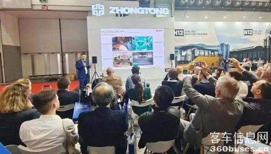 2023比利時世界客車博覽會上,中通客車攜純電動旅游大巴H12、純電動城市客車V7、氫燃料城市客車N12三款產(chǎn)品驚艷亮相。