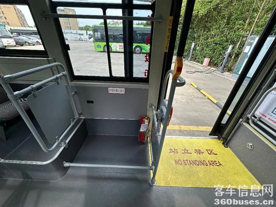 此批蘇州金龍海格超充純電動公交車為一級踏步低入口設(shè)計,后門采用塞拉門,車廂內(nèi)還設(shè)置了行李放置區(qū),對于乘坐該線趕高鐵的旅客們非常友好。