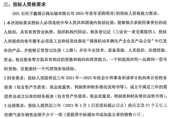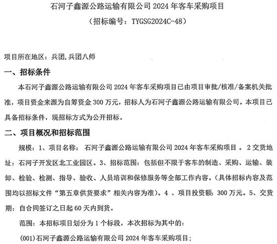 新疆石河子鑫源公路運輸有限公司2024年客車采購項目