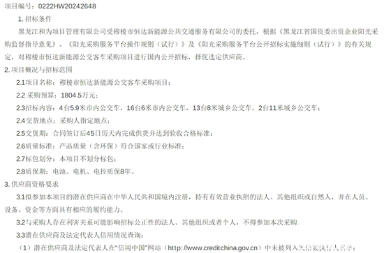 黑龍江省穆棱市恒達(dá)新能源公交客車采購(gòu)項(xiàng)目