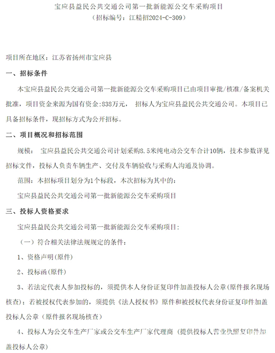 江蘇省揚(yáng)州市寶應(yīng)縣益民公共交通公司第一批新能源公交車采購(gòu)項(xiàng)目