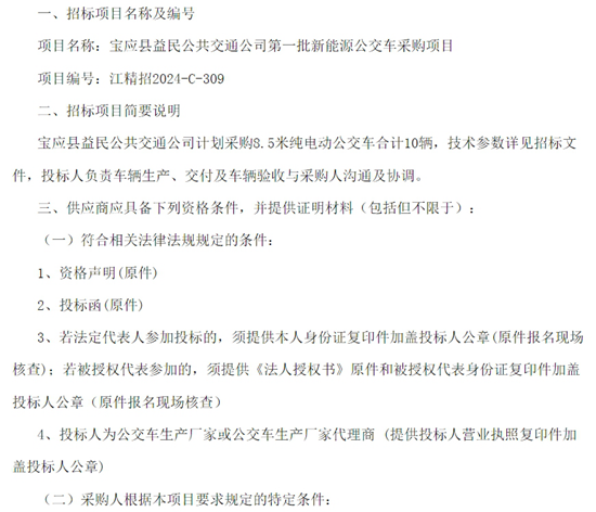項(xiàng)目名稱:福建省2024年第二批公交車輛采購(gòu)項(xiàng)目