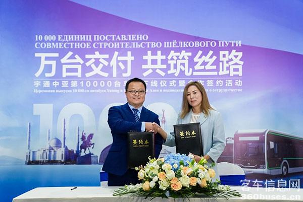 在中亞第10000輛車輛下線這一重要時刻,宇通重磅宣布斬獲哈薩克斯坦1000輛新訂單,標志著宇通僅用半年時間,在中亞市場的銷量便成功突破2000輛。這批哈薩克斯坦新訂單,將由宇通在哈薩克斯坦與合作伙伴共建的CKD工廠(QazTehna工廠)進行生產(chǎn)和下線,合作雙方在活動現(xiàn)場進行了生產(chǎn)訂單簽約。