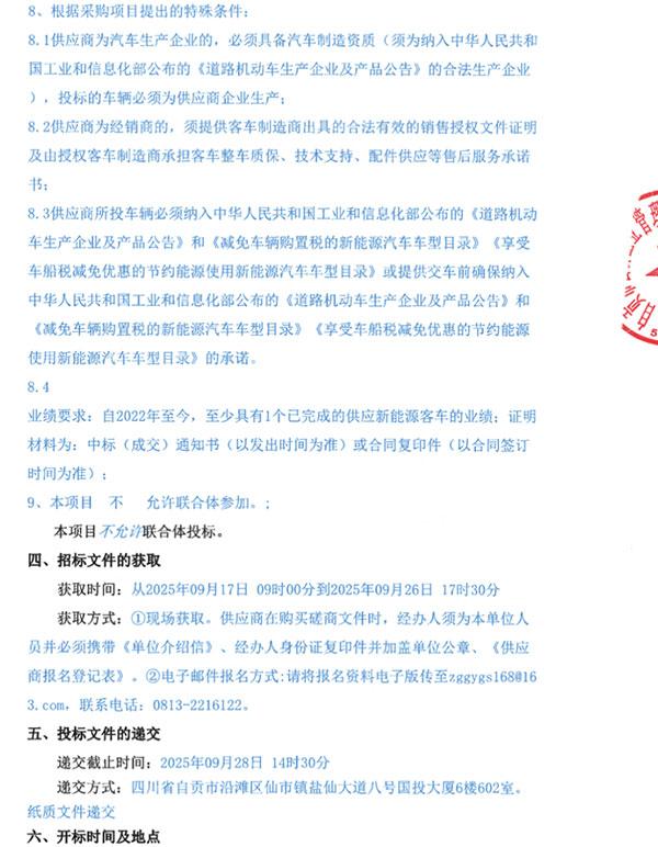 四川省自貢市公交集團有限責任公司關(guān)于新能源純電動公交客車采購項目的延期(補遺02號)公告