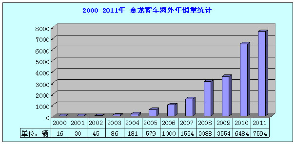 2005年,大金龍?jiān)谥袊蛙嚻髽I(yè)中率先通過英國VCA認(rèn)證,獲得歐盟市場“通行證”,當(dāng)年6月,首輛大金龍XMQ6127正式出口英國,目前這一車型在英國的銷量超過100輛。2010年,大金龍針對當(dāng)?shù)匦枨箝_辟中型旅游客車的細(xì)分市場,XMQ6800、XMQ6900兩款車型成功打入英國市場,目前已獲得80多輛的訂單;