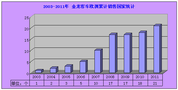 迄今為止,大金龍已成功將車輛出口到英國、法國、德國、意大利、羅馬尼亞、保加利亞、奧地利、瑞典、斯洛文尼亞、匈牙利、塞浦路斯、馬耳他等12個歐盟國家,而在歐洲,出口國家累計(jì)達(dá)到21個,市場保有量超過2500輛。無論從銷售數(shù)量還是實(shí)現(xiàn)銷售的國家來看,大金龍開拓歐洲市場的步伐都走在中國客車企業(yè)的前列。