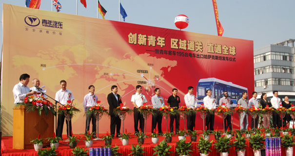10月9日“創(chuàng)新青年 區(qū)域通關 直通全球——暨青年客車195臺電車出口哈薩克斯坦發(fā)車儀式”在青年汽車集團廠區(qū)隆重舉行。市政府領導及青年汽車集團董事局主席、總裁龐青年、董事局副主席、執(zhí)行總裁王淑丹等出席交車儀式。今年6月,哈薩克斯坦阿拉木圖市政府向青年汽車采購了195輛雙源無軌電車,為本市公共交通系統(tǒng)服務使用。首批50輛已在鐵路金華站裝車,在金華海關采用區(qū)域通關方式報關后發(fā)運至阿拉山口,經(jīng)口岸放行后進入哈薩克斯坦。[詳細]