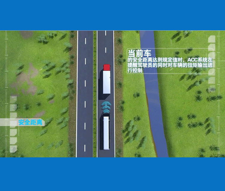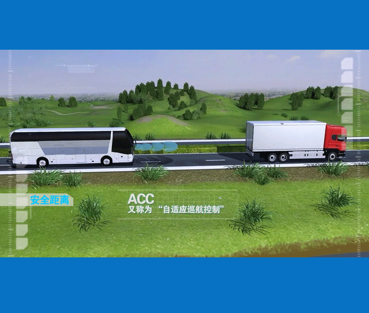 青年ACC 系統(tǒng)的控制目標(biāo)是適當(dāng)?shù)乜刂栖囕v的速度,保持車輛間安全距離:在車輛行駛過(guò)程中,安裝在車輛前部的車距傳感器持續(xù)掃描車輛前方道路,同時(shí)輪速傳感器采集車速信號(hào)。當(dāng)與前車之間的距離過(guò)小時(shí),青年ACC控制單元可以通過(guò)與制動(dòng)防抱死系統(tǒng)、發(fā)動(dòng)機(jī)控制系統(tǒng)協(xié)調(diào)動(dòng)作,使車輪適當(dāng)制動(dòng),并使發(fā)動(dòng)機(jī)的輸出功率下降,以使車輛與前方車輛始終保持安全距離。自適應(yīng)巡航控制系統(tǒng)在控制車輛制動(dòng)時(shí),通常會(huì)將制動(dòng)減速度限制在不影響舒適的程度,當(dāng)需要更大的減速度時(shí),ACC控制單元會(huì)發(fā)出聲光信號(hào)通知駕駛者主動(dòng)采取制動(dòng)操作。當(dāng)與前車之間的距離增加到安全距離時(shí),ACC控制單元控制車輛按照設(shè)定的車速行駛。