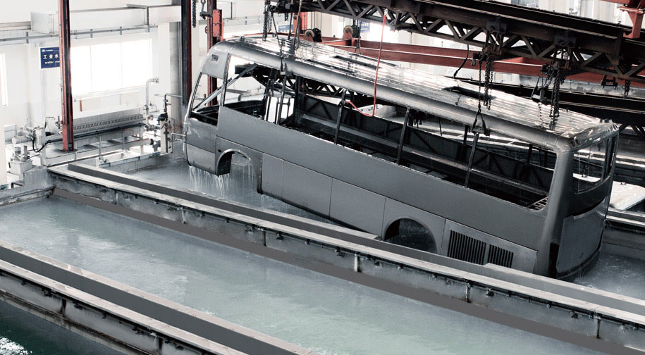 宇通投資2億多元建造的全自動電泳生產(chǎn)線,是全球最先進、規(guī)模最大的大客車陰極電泳涂裝生產(chǎn)線。應(yīng)用宇通電泳技術(shù),電泳后的漆膜可使車輛耐鹽霧大于1000小時,整車防腐能力、美觀度均可大大提高。