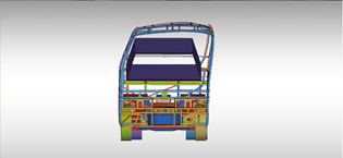 前圍蒙皮兩側(cè)和中間均可翻轉(zhuǎn)打開,便于檢修燈具,除霜器、雨刮器等零部件。