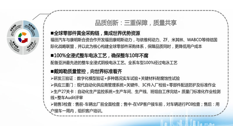 2013年8月9日,福田歐輝對(duì)外正式發(fā)布了CVC(Creative value chain)全價(jià)值鏈創(chuàng)新戰(zhàn)略,該戰(zhàn)略是以客車用戶運(yùn)營需求為導(dǎo)向、以福田歐輝全價(jià)值鏈整合創(chuàng)新體系為基礎(chǔ)、以實(shí)現(xiàn)客車用戶價(jià)值為目標(biāo)的“可持續(xù)競爭戰(zhàn)略”。