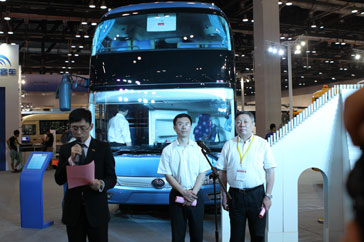 第三屆“北京國(guó)際道路運(yùn)輸、城市公交車輛及零部件展覽會(huì)”,在北京國(guó)家會(huì)議中心開(kāi)幕。宇通客車攜5款車型參加本次車展,并帶來(lái)了最新的ZK6118H型10米一層半客車。在展會(huì)現(xiàn)場(chǎng),宇通客車副總經(jīng)理王文兵和嘉賓、媒體記者共同見(jiàn)證了10米一層半新車的發(fā)布,并簡(jiǎn)短的介紹了新車及這款車的優(yōu)勢(shì)所在。[詳細(xì)]